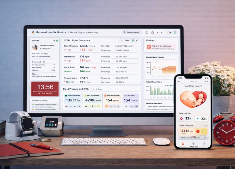 MaternAI LiveCare™ brings clinical-grade monitoring into everyday life using connected wearables and home sensors that capture vital trends between visits. It turns daily signals into clear, actionable insights for both lifestyle improvement and maternal care, helping clinicians detect early changes, prioritize follow-up, and support patients with personalized guidance. The platform presents a unified view of health status, risk, and adherence, while keeping the experience simple for patients and practical for care teams. It enables earlier intervention, safer pregnancies, and more effective long-term wellness through continuous, reliable visibility.
